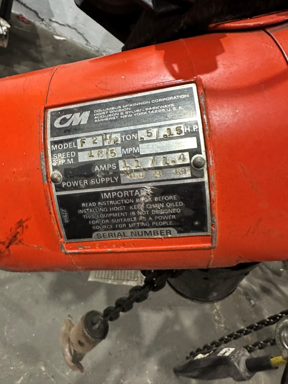 CM F2 1/2 TON ELECTRIC CHAIN HOIST EQUIPPED WITH: