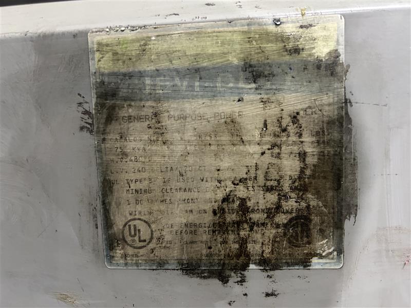 HEVI DUTY 75KVA TRANSFORMER HV:480 LV:240 EQUIPPED WITH: