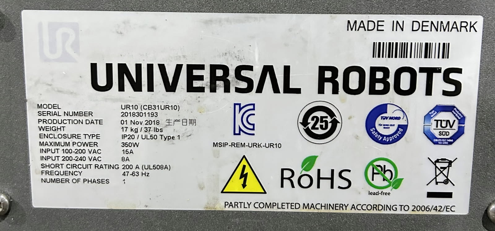 UNIVERSAL UR10 COBOT - 2018