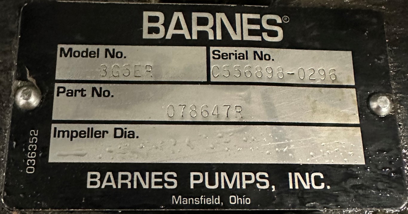 BARNES 3G5 5HP PUMP - GASOLINE EQUIPPED WITH: