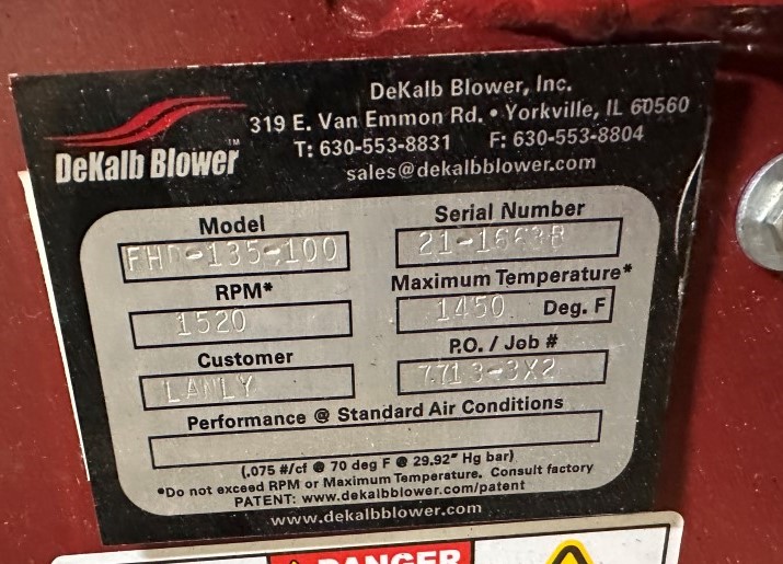 DEKALB FHD-135-1000 FURNACE BLOWER EQUIPPED WITH: