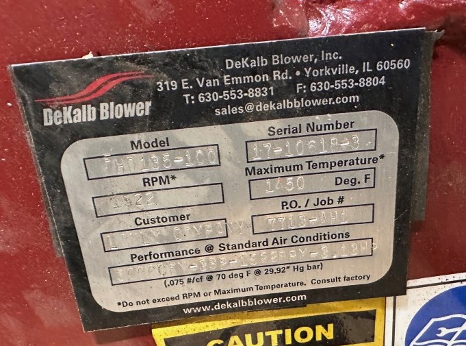 DEKALB FHD-222-100 FURNACE BLOWER EQUIPPED WITH: