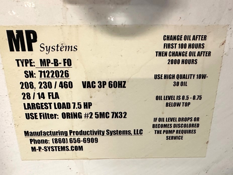 MP SYSTEM MP-B-F0 HIGH PRESSURE COOLANT SYS. EQUIPPED WITH: