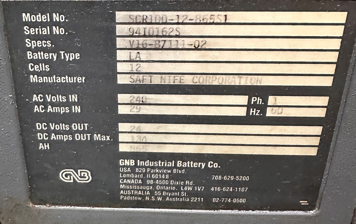 GNB 24VOLT BATTERY CHARGER EQUIPPED WITH: