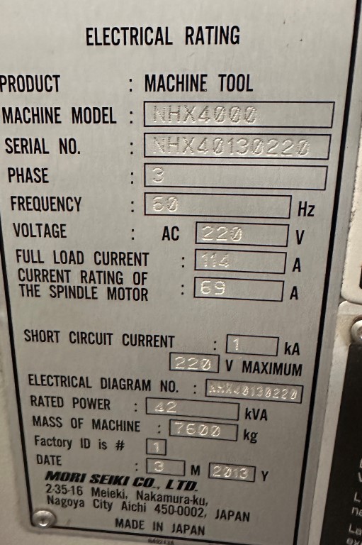 MORI SEIKI NHX4000 HORIZONTAL MACHINING CENT