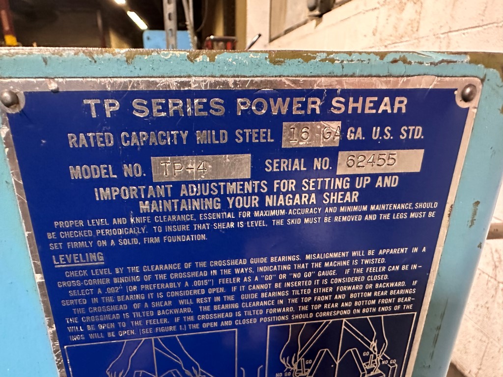 NIAGARA TP-4 16GA X 48" POWERED SHEAR EQUIPPED WITH: