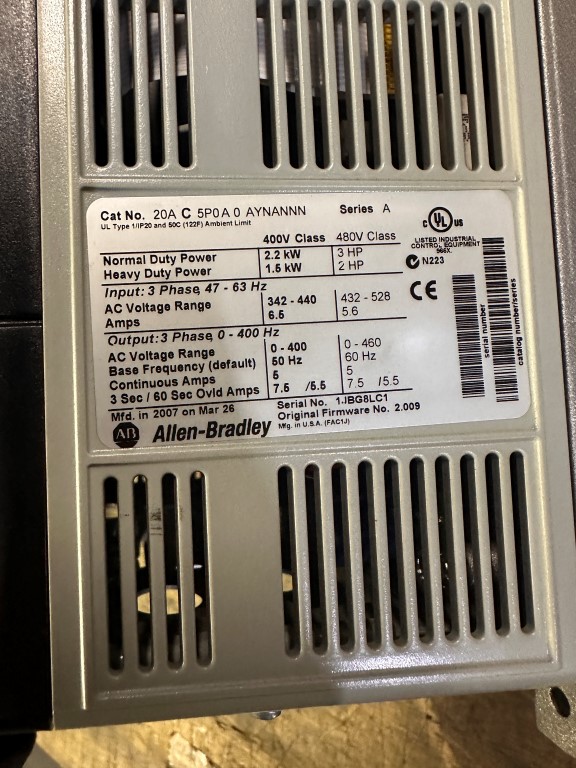 ALLEN BRADLEY 3HP VARIABLE SPEED DRIVE EQUIPPED WITH: