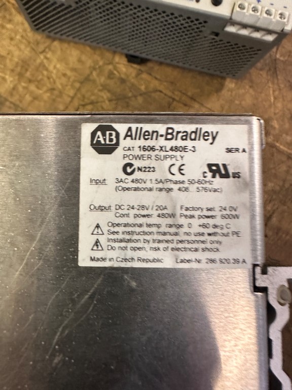 ALLEN BRADLEY 1606-XL 24VDC/20A DC POWER SUPP EQUIPPED WITH: