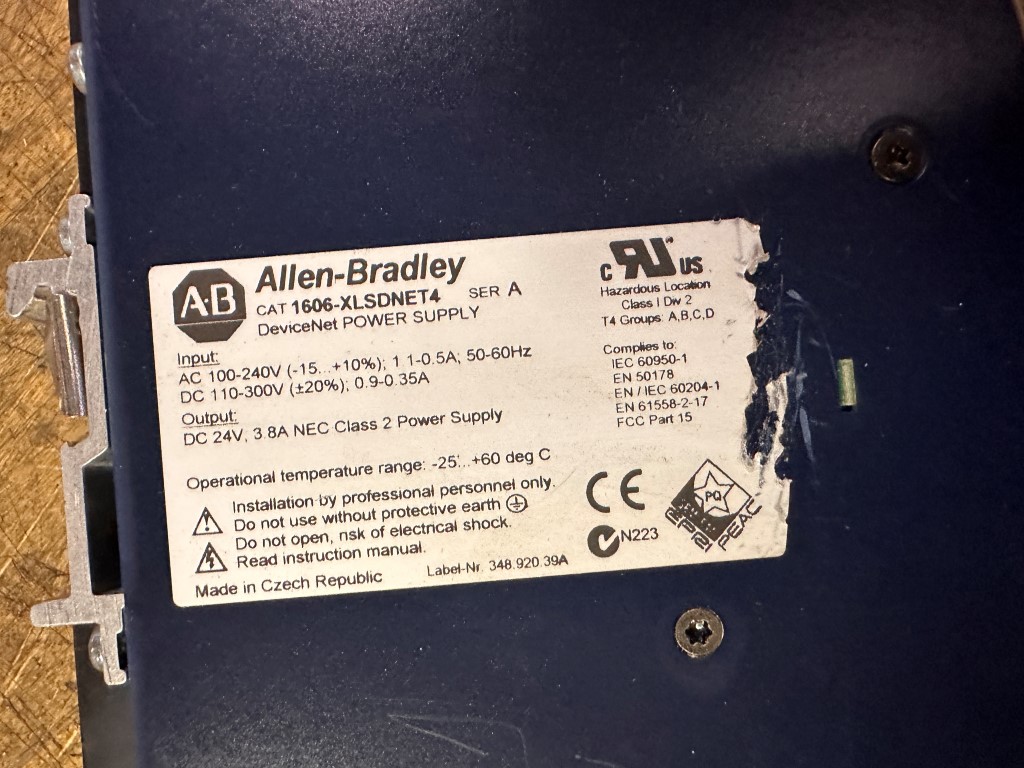 ALLEN BRADLEY 1606-XLS 24V/3.8A DC POWER SUP EQUIPPED WITH: