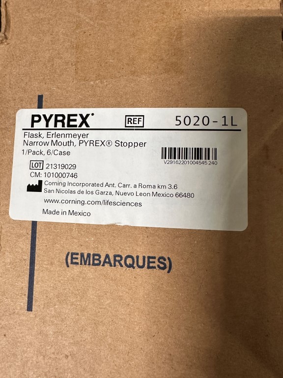 PYREX 5020-1L 1000ML NARROW MOUTH FLASK (QTY