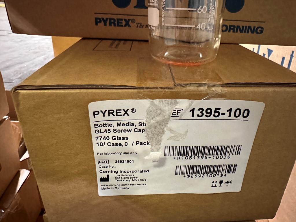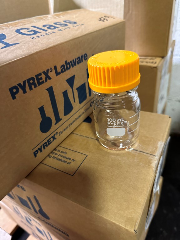 PYREX 1395-100 100ML ROUND MEDIA STORAGE BOT EQUIPPED WITH: