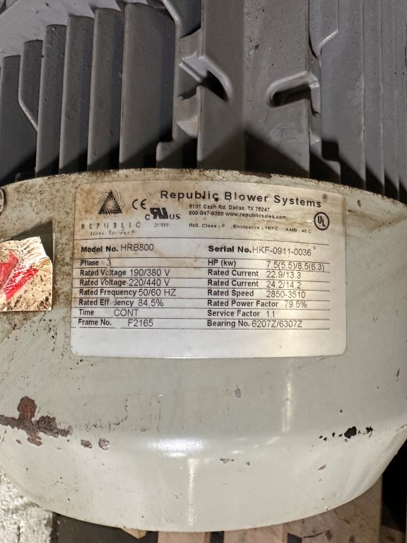 REPUBLIC HRB800 7.5HP CENTRIFUGAL BLOWER