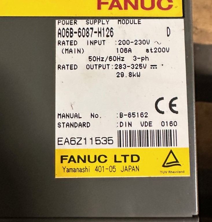 FANUC A06B-6087-H126 POWER SUPPLY EQUIPPED WITH: