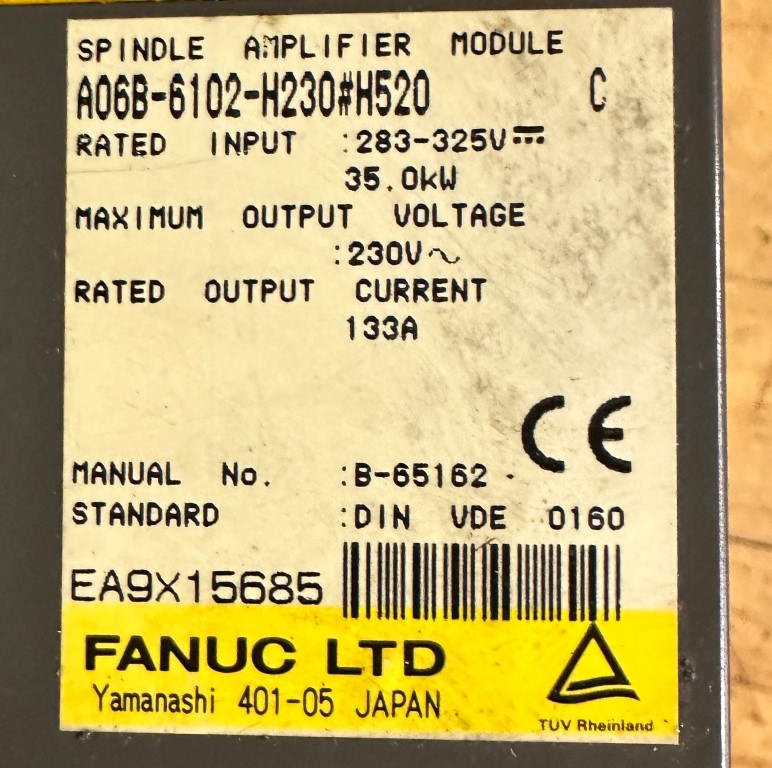 FANUC A06B-6102-H230#520 SPINDLE AMPLIFIER EQUIPPED WITH: