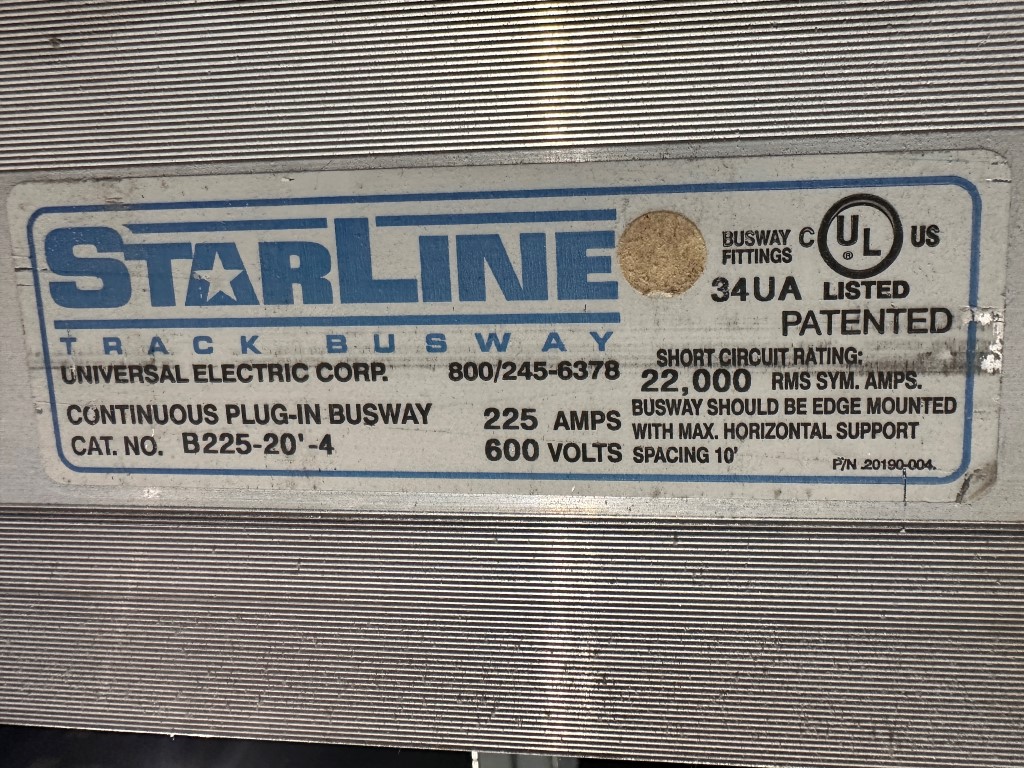 STARLINE B225-20-4 225AMP BUS WAY - 20' SECT EQUIPPED WITH: