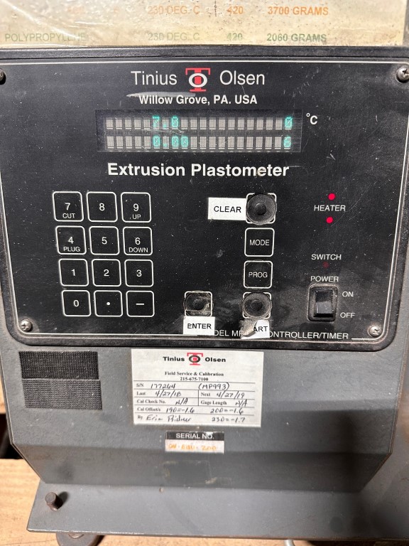 TINIUS OLSEN MP993 EXTRUSION PLASTOMER
