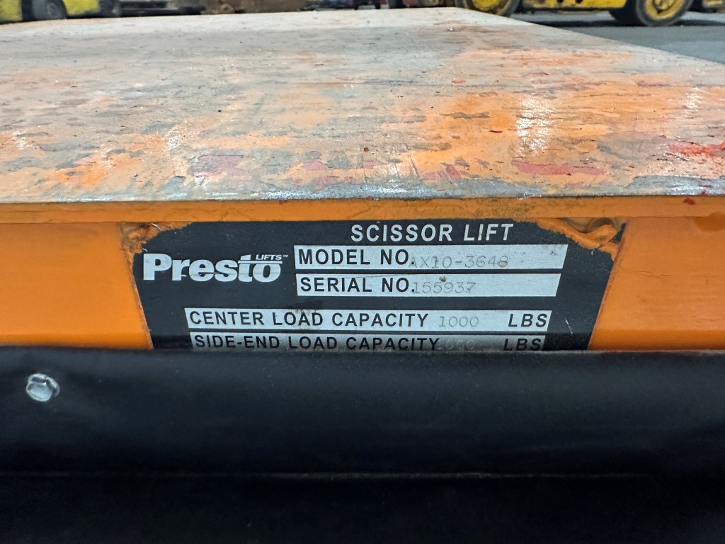 PRESTO AX100-3648 1,000LBS. PNEUMATIC LIFT T EQUIPPED WITH: