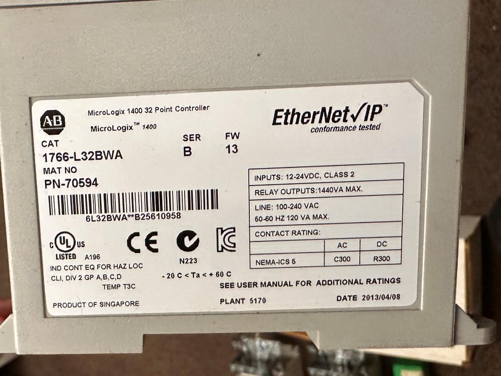 ALLEN BRADLEY MICROLOGIX 1400 PLC - CAT: 176 EQUIPPED WITH: