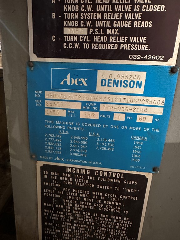 DENISON 6TON HYDRAULIC PRESS W/ INDEX TABLE EQUIPPED WITH: