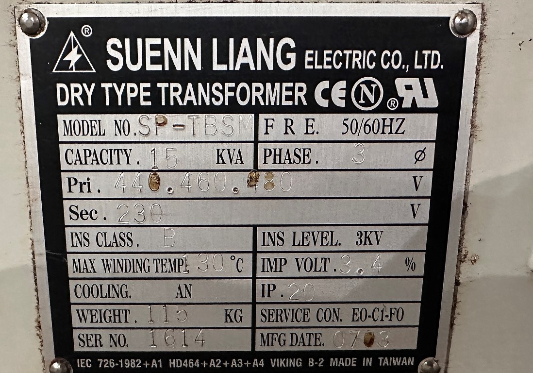 SUENN LIANG 15KVA TRANSFORMER HV:440-480 LV:2 EQUIPPED WITH: