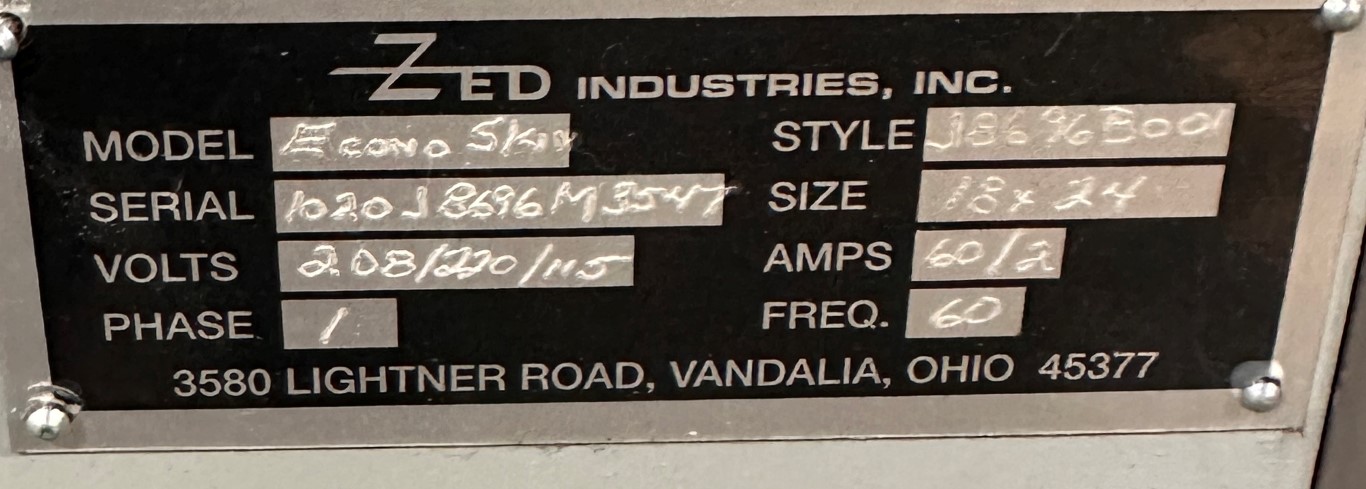 ZED ECONOSKIN SKIN PACKER EQUIPPED WITH: