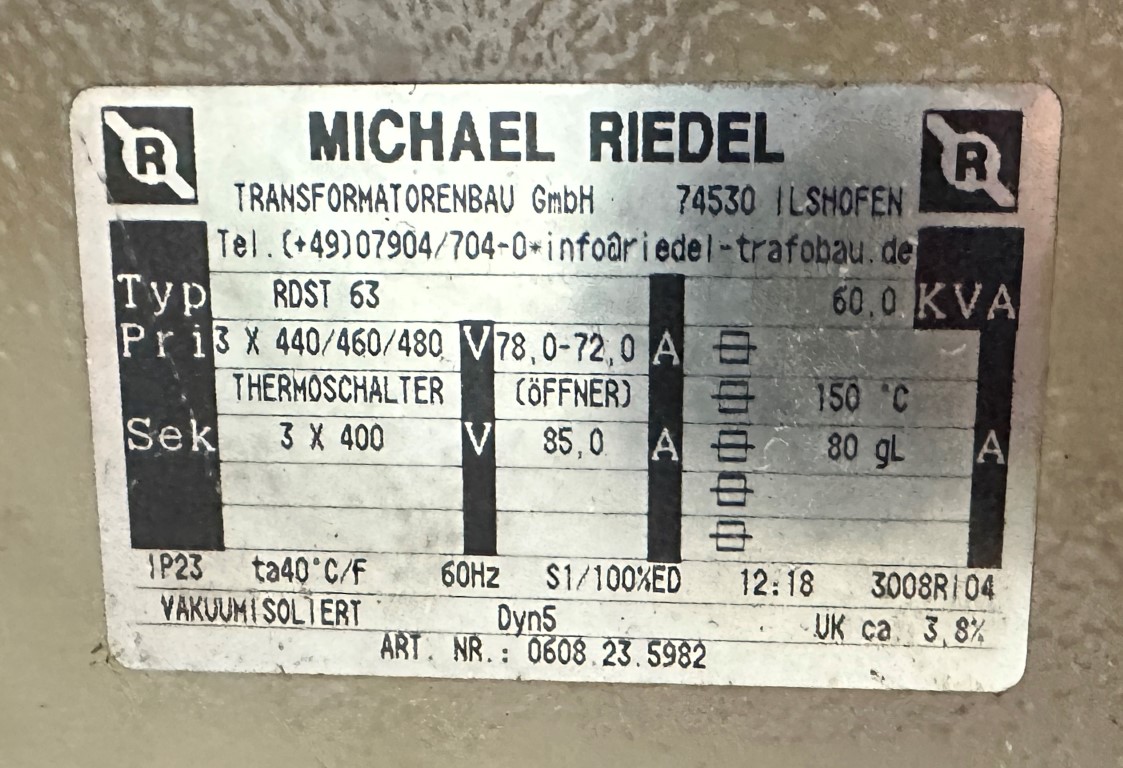 MICHAEL RIEDL 60KVA TRANSFORMER HV:440/460/48 EQUIPPED WITH: