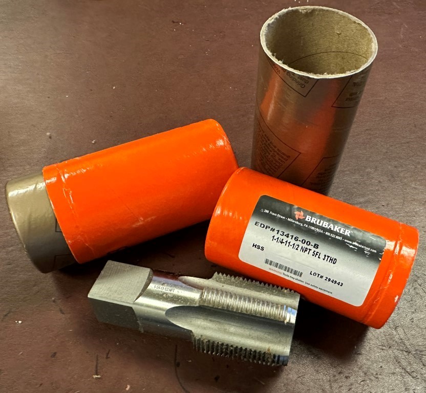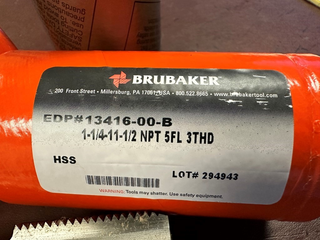 BRUBAKER 1 1/4-11-1/2 NPT 5FL 3THD TAPS (2)- EQUIPPED WITH: