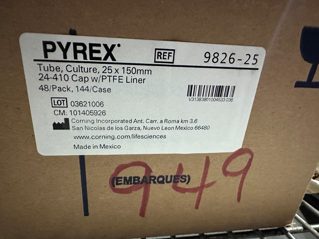 PYREX 9826-25 CULTURE TUBES - NEW EQUIPPED WITH: