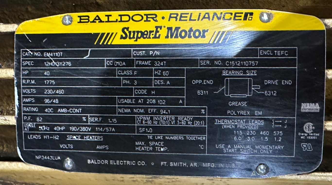 BALDOR 40HP ELECTRIC MOTOR EQUIPPED WITH: