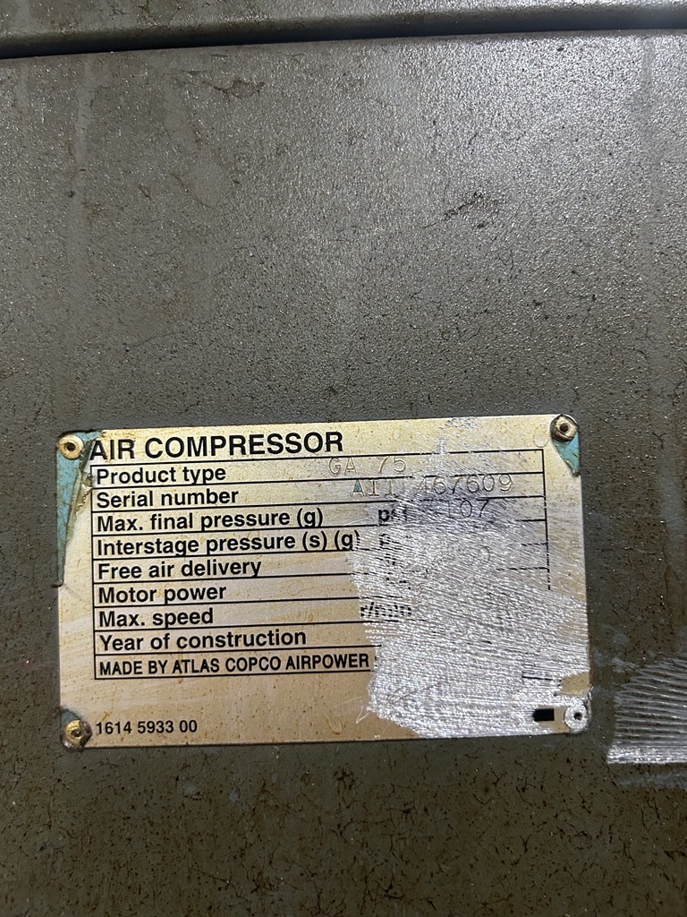 ATLAS COPCO GA-75 100HP AIR COMPRESSOR