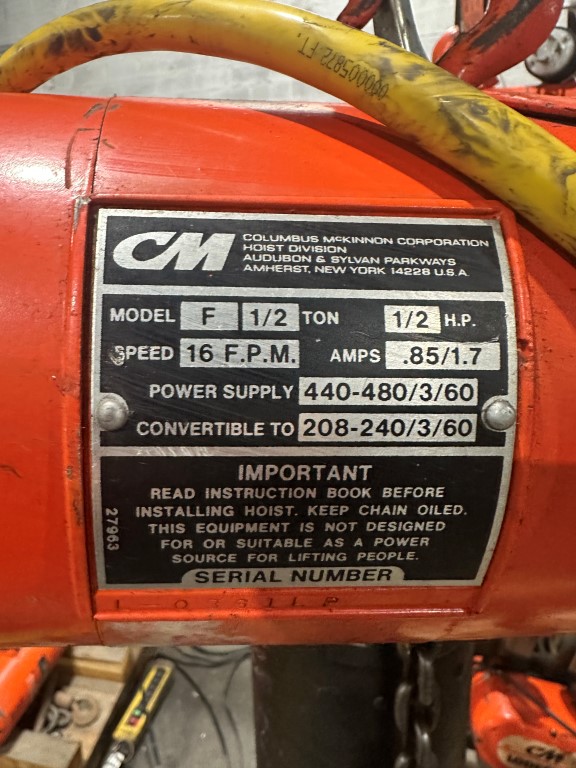 CM F 1/2 TON ELECTRIC CHAIN HOIST