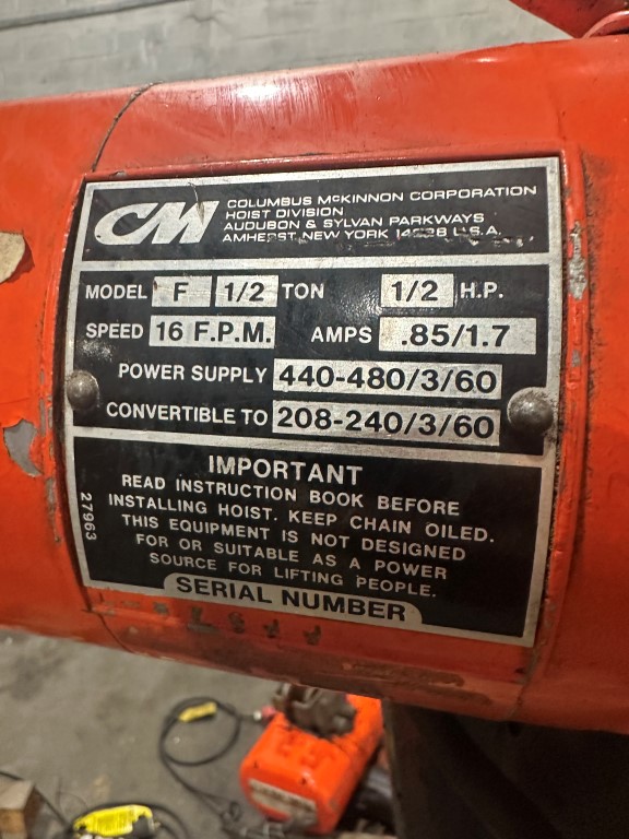 CM F 1/2 TON ELECTRIC CHAIN HOIST