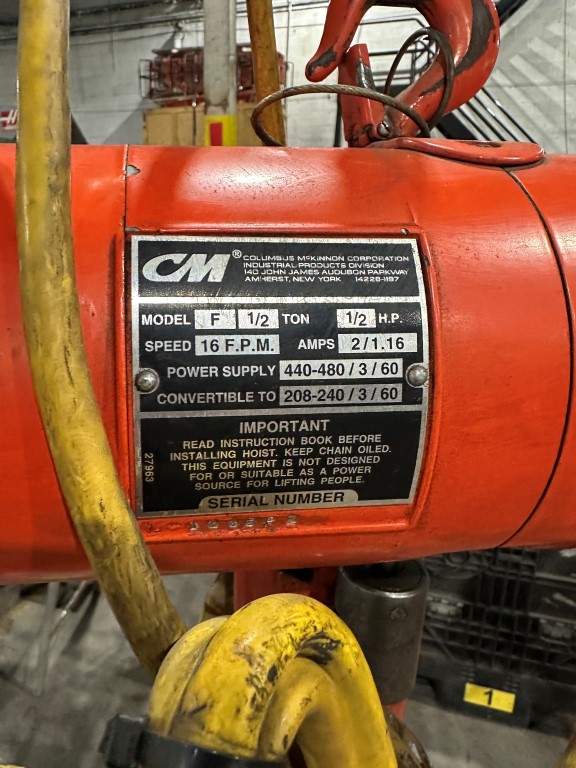 CM F 1/2 TON ELECTRIC CHAIN HOIST EQUIPPED WITH:
