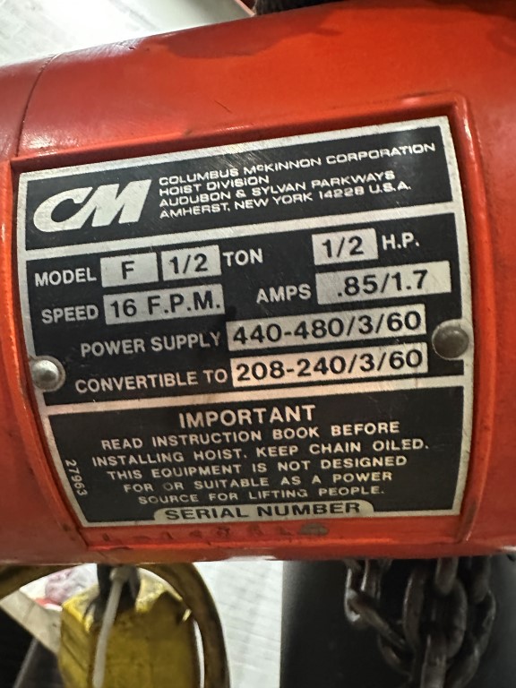 CM F 1/2 TON ELECTRIC CHAIN HOIST