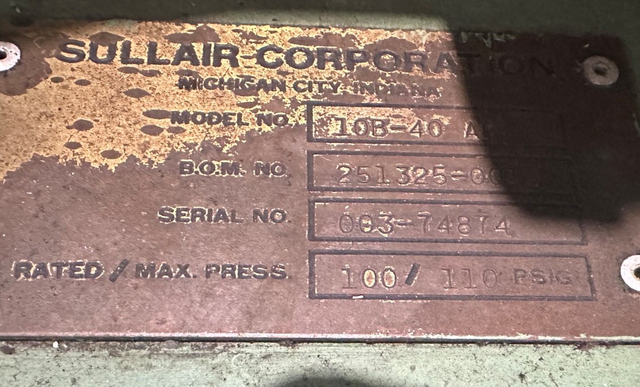 SULLAIR 40HP AIR COMPRESSOR EQUIPPED WITH: