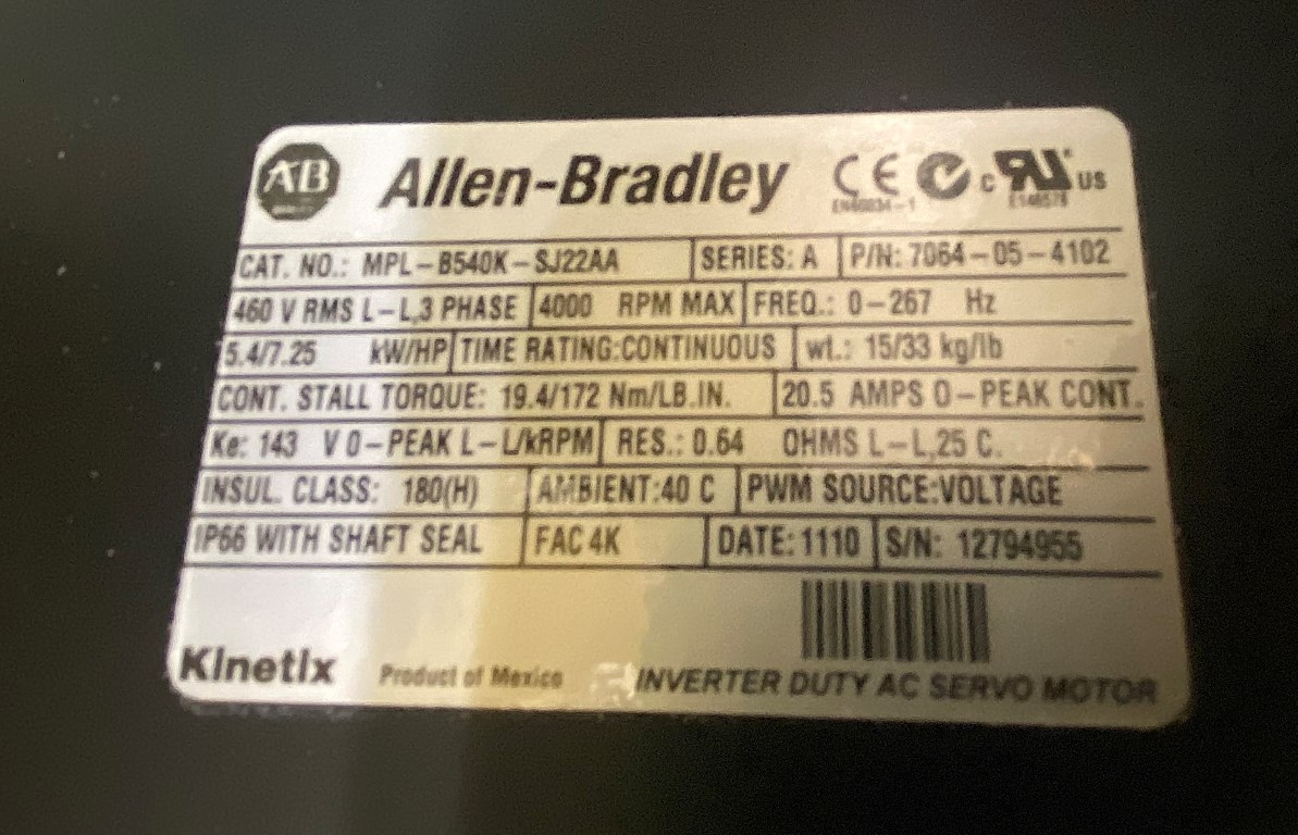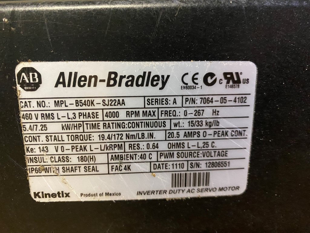 ALLEN BRADLEY 7.25HP SERVO MOTOR EQUIPPED WITH: