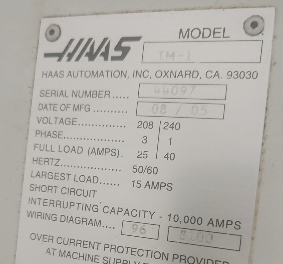 HAAS TM1 CNC MILL EQUIPPED WITH: