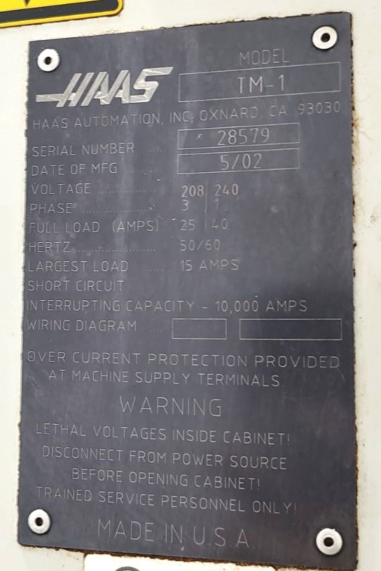 HAAS TM-1 CNC MILL EQUIPPED WITH:
