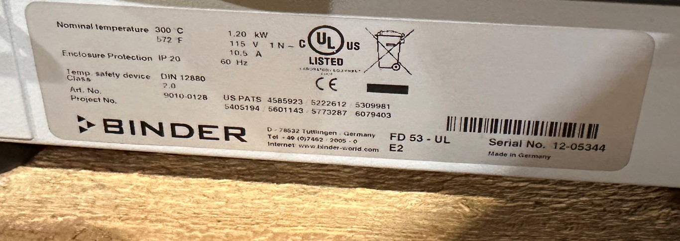 BINDER FD53-UL 572 FORCED CONVECTION DRYING