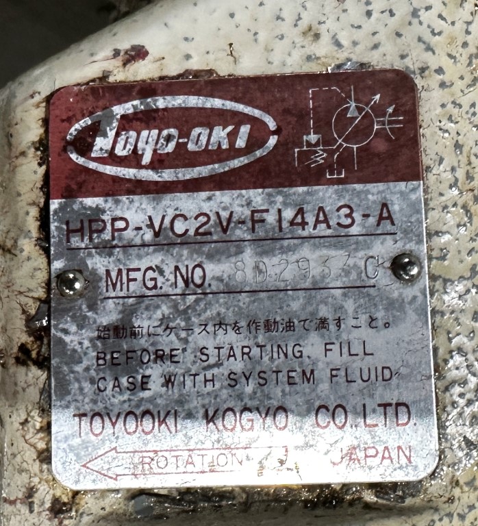 TOYO-OKI HPP-VC2V-FI4A3-A HYDRAULIC PUMP EQUIPPED WITH: