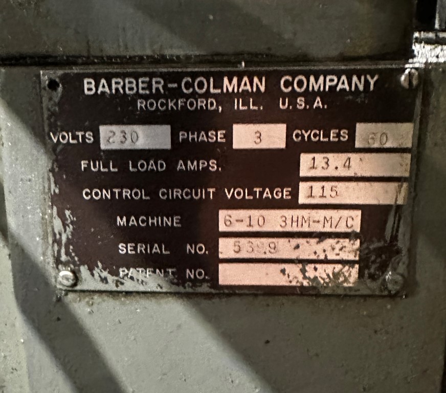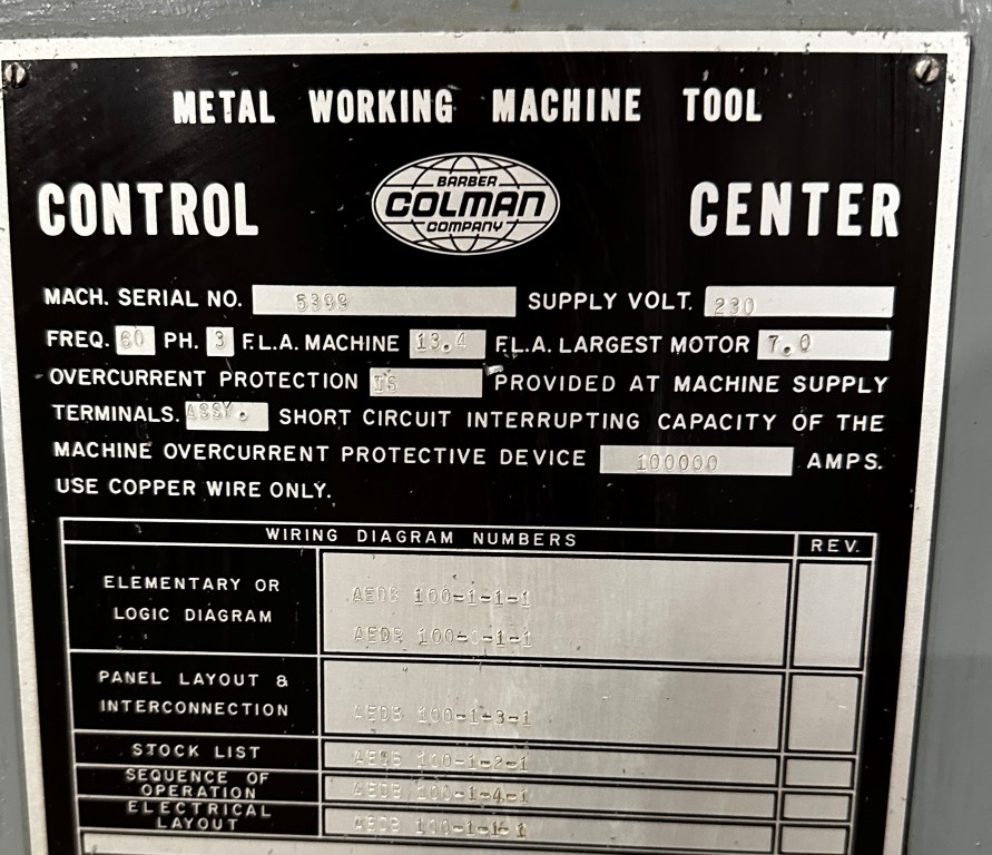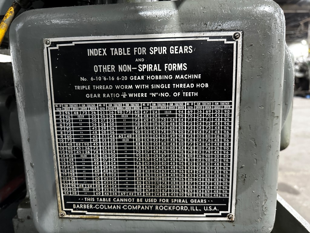BARBER COLEMAN 6-10 GEAR HOBBER EQUIPPED WITH: