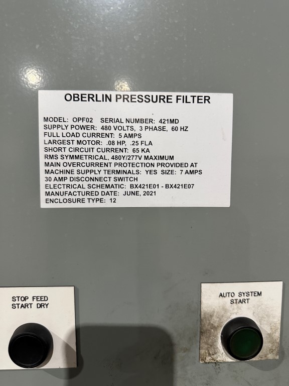 OBERLIN OPF02 PRESSURE COOLANT FILTER SYSTEM EQUIPPED WITH: