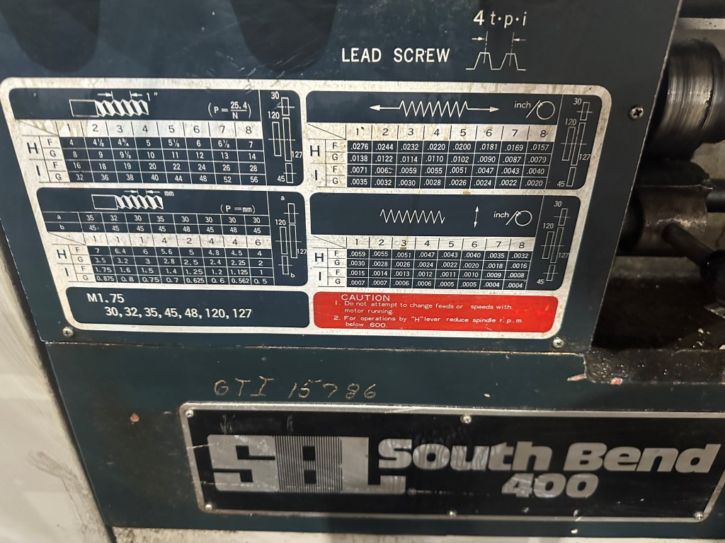 SOUTHBEND 400 15" X 36" LATHE EQUIPPED WITH: