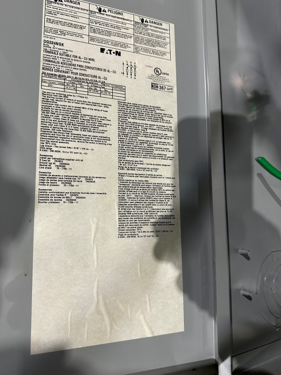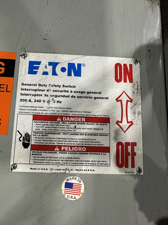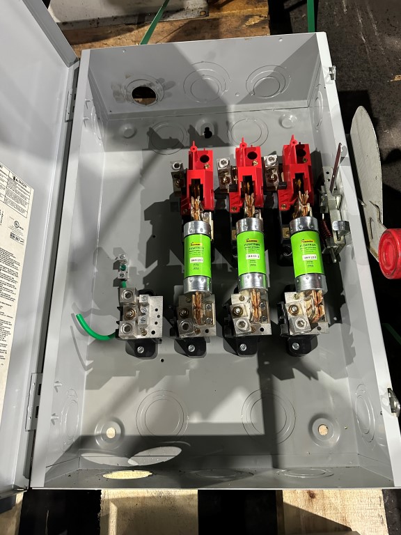 EATON 200AMP FUSIBLE DISCONNECT W/ FUSES EQUIPPED WITH: