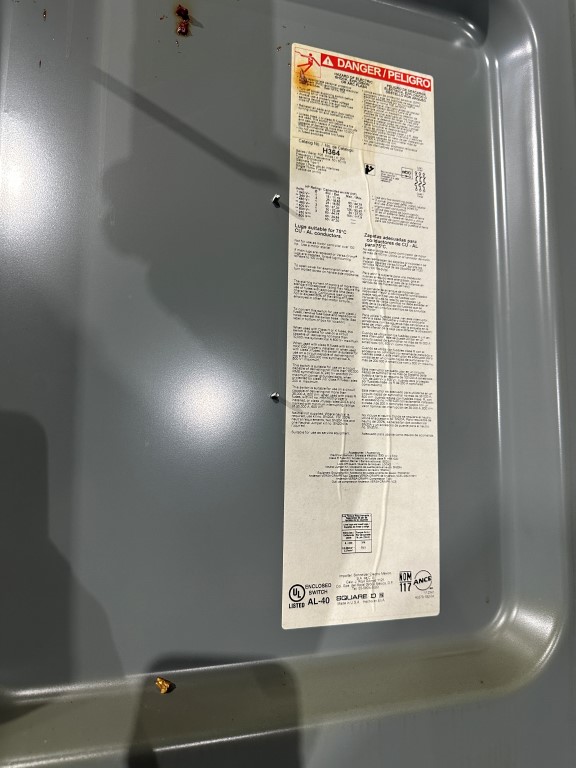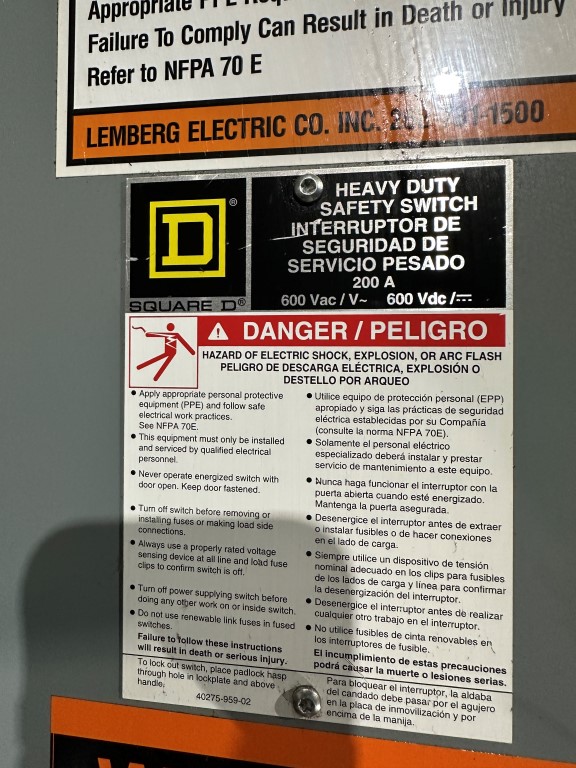 SQUARE D H364 200AMP FUSIBLE DISCONNECT W/FUS EQUIPPED WITH: