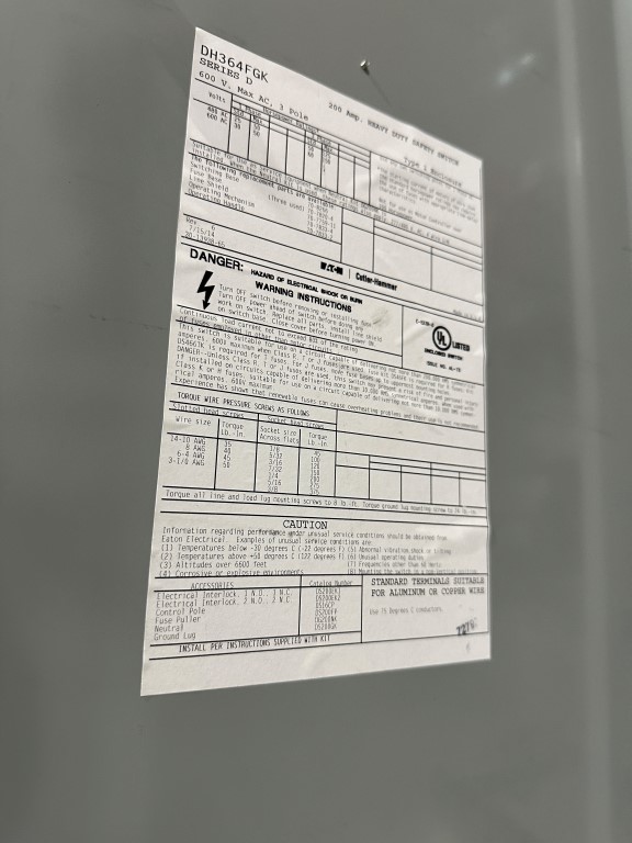 EATON DH364FGK 200AMP FUSIBLE DISCONNECT EQUIPPED WITH: