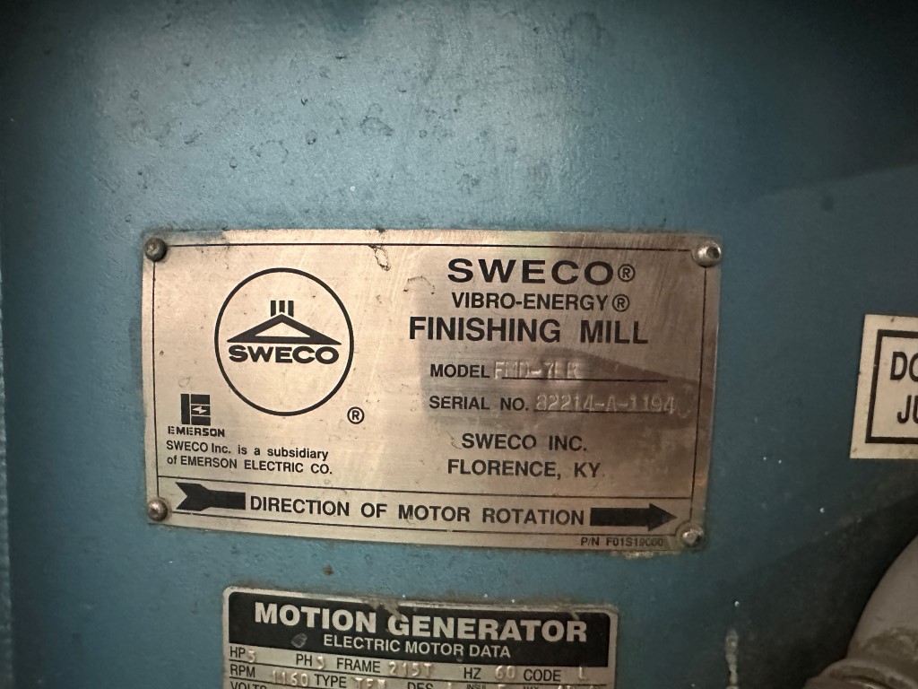 SWECO FMD-7LR 7CU.FT. VIBRATORY FEEDER EQUIPPED WITH: